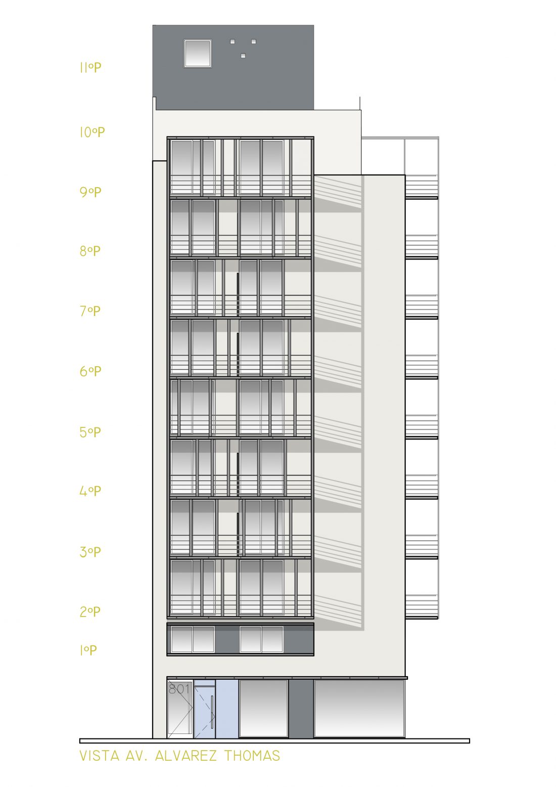 Alvarez Thomas 803/801 es un edificio en Propiedad Horizontal de PB y 9 pisos ubicado en el Barrio de Colegiales en la Ciudad Autónoma de Buenos Aires. Se emplaza en un lote en esquina y esta organizado en un bloque, con todas al unidades abiertas hacia la Av. Alvarez Thomas y la calle lateral, Palpa.