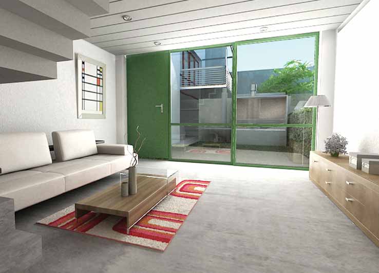 Este proyecto se alinea bajo el concepto de CASAS VERDES, que a través de los grandes espacio comunes a cielo abierto, los jardines verdes privados, los puentes y las terrazas sobrevolando estos espacios, la incorporación de la vegetación, la libre circulación del aire y la luz, generan la sensación de ser pequeñas casas verdes en medio del tejido urbano.