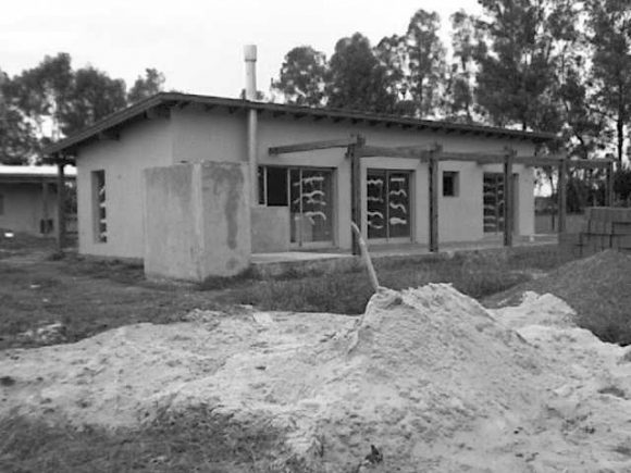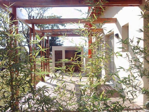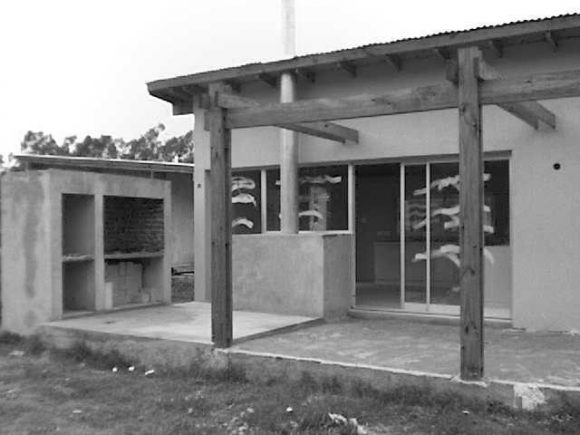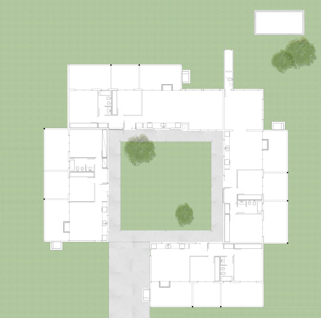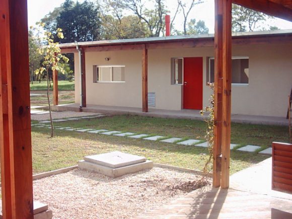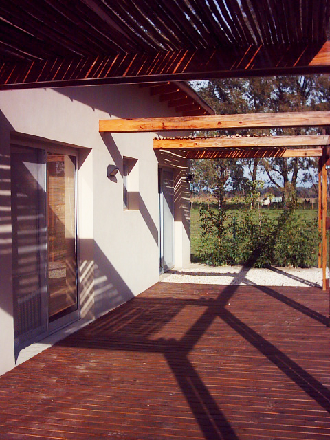Este proyecto genera una gradualidad entre el interior y exterior que definen las casas y el patio. Un patio envuelto por un volumen bajo de construcción, propio de las viviendas, otorga una dimensión equilibrada entre borde y tamaño que lo enfatiza en su condición. El tratamiento diferencial que se da entre las fachadas que miran hacia ese afuera-patio y las que son contrarias a éste, potencian la fuerza para que el verde del lote del alrededor se convierta en un ambiente más e ingrese al interior de las mismas.