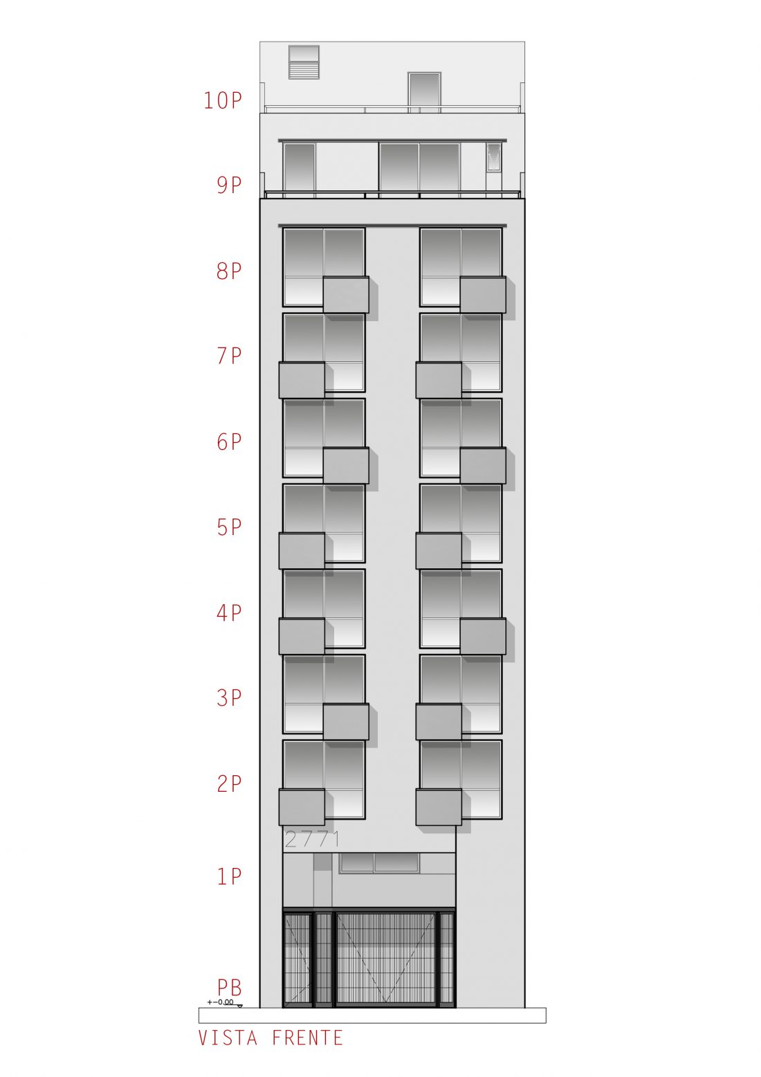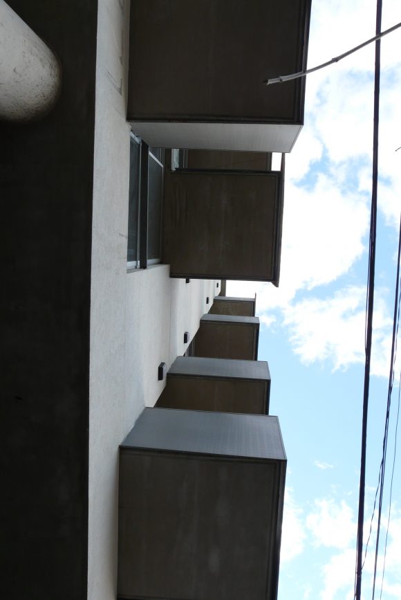 Esta cajas metálicas, que son las expansiones de los departamentos, se organizan a través de una grilla modulada sobre la cual estas, se van "moviendo" en todo el desarrollo de la fachada